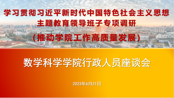 凝心聚力抓好主题教育,持续推动党建工作与事业发展“一融双高” ——人兽 党委召开基层教工党支部书记工作座谈会6月12日,人兽 党委以“凝心聚力抓好主题教育,持续推动党建工作与事业发展“一融双高”为主题,召开基层教工党支部书记工作座谈会。基础数学党支部、应用数学党支部和数学教育党支部书记、委员参加座...2023-06-12