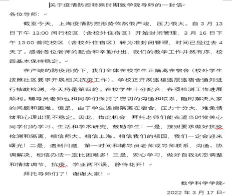 我们“疫”起,共克时艰|人兽 党委组织教师开展组团式学生对接指导面对复杂严峻的疫情防控形势,人兽 党委坚决贯彻落实学校党委3月26日理论学习中心组扩大会会议精神,第一时间召开全院大会,广泛动员专任教师、研究生导师、本科生班主任、辅导员组团开展对学生的“组团式”“...2022-03-31