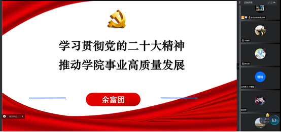 2月22日上午和23日下午,人兽 党委书记贾挚、副书记余富团分别在线以专题党课的形式宣讲党的二十大精神,学院全体师生党员参加学习。