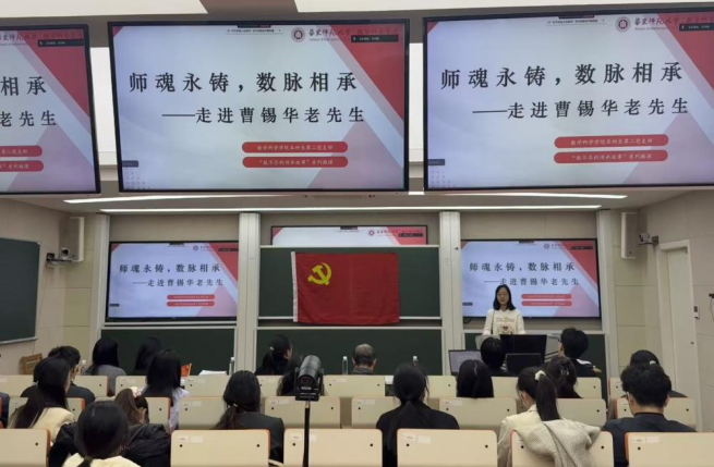 在“薪火七秩,数育芳华——走进华东师大数学教育史”部分,苑妍颜通过详实的历史档案、生动的影像资料与深情的讲述,系统回顾了人兽 七十余年来在人才培养、学科建设与社会服务等方面取得的显著成就。学院培养了包括中国科学院院士胡和生、席南华等杰出科学家和数学家,以及活跃在国内外知名大学的数学家和学者。这些成就不仅体现了“数理并重、教研相长”的生动育人图景,也引发了在场党员对学科根脉的深切认同。