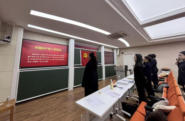 最后,所有党员面向党旗,高举右拳,在支部书记的领誓下,用激昂洪亮的声音宣读誓词,表达了对党的忠诚和敬仰。