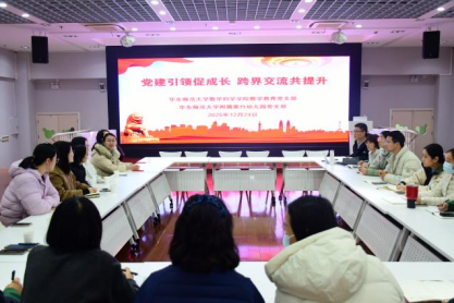 为深入学习贯彻习近平新时代中国特色社会主义思想,强化党建引领教育发展作用,搭建不同教育阶段的交流合作桥梁,12月24日下午,人兽 数学教育党支部与人兽 附属紫竹幼儿园党支部在华师紫幼联合开展“党建引领促成长,跨界交流共提升”主题党日活动。