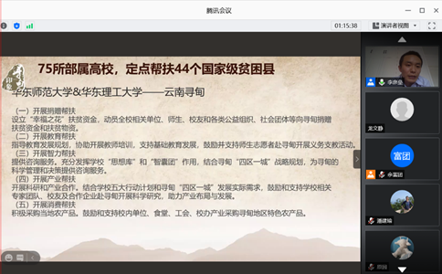 贾挚表示,人兽 全体师生十分关注、关心脱贫攻坚工作,都希望能为教育扶贫出一份力、作出自己应有的贡献。事实上,我们学院7月份也已组建了非常数学志愿者服务队,参加了人兽 寻甸县中小幼素质教育帮扶试点学校(数学素养提升项目),我们对口的是寻甸县金所119希望小学,已经完成了如有趣的一笔画、古堡七桥问题、从韩信点兵谈起等6个专题的授课,受到了当地学生的热烈欢迎,收到了非常好的效果。她强调希望大家通过报告,深入了解扶贫攻坚第一线的艰苦工作,后续通过学习《习近平谈治国理政》(第三卷)和讨论,继续为脱贫攻坚、教育扶贫工作献计献策,并作出我们应有的实际行动。