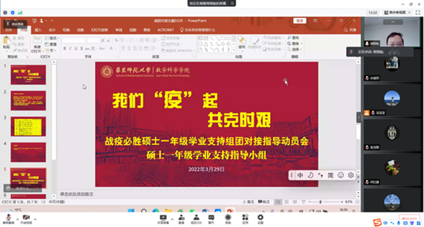 守土有责、守土负责,随后,研究生、本科生分条线分别召开了“学业支持组团对接指导动员会”、“博士毕业生导师指导研究生就业动员会”、“导师团队指导研究生动员会”、“硕士二年级学业支持指导小组动员会”、“硕士一年级学业支持组团对接指导动员会”,再发动再动员。党员带头、全员参与,老师们纷纷启动指导活动,“博士生毕业论文与就业要双管齐下、两不误”,“闷在宿舍不舒服,要多跟导师联系,发泄出来会好很多”,“研究卡壳的时候,随时跟导师沟通”,“数学分析的教学辅助资料、相关教学资源都上传到超星泛雅平台上了,如果没搞清楚怎么用,我下次再给大家讲一讲”……老师们纷纷给学生支招。截止目前,全院已开展线上组团对接指导活动7场,本周将完成近20场活动。学院党委将持续推进活动开展,加强考核,直至战疫取得胜利。