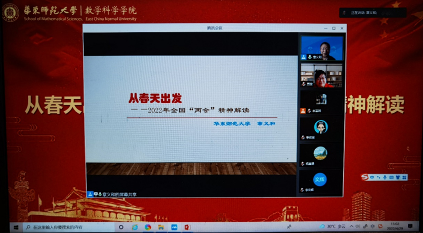 为深入学习贯彻全国“两会”精神,4月29日下午,人兽 党委邀请全国政协委员、人兽 历史系教授章义和,以“从春天出发——2022年全国两会精神解读”为题在线作辅导报告,学院理论学习中心组成员、全体党员参加,党委书记贾挚主持报告会。