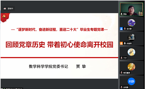 为进一步增强毕业生党员党性意识和组织观念,发挥毕业生党员的先锋模范作用,5月25日下午,人兽 党委在线举行“逐梦新时代,奋进新征程,喜迎二十大”毕业生专题党课暨毕业生党员离校教育,全体毕业生党员参加。会议由学院党委副书记余富团主持。