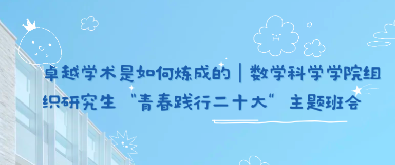 卓越学术是如何炼成的⼁人兽 组织研究生“青春践行二十大”主题班会3月9日下午,人兽 研究生“青春践行二十大”新学期第一次主题班会在三教109开讲。班会紧紧围绕“爱国、团结、奋斗、科学、互助”五个关键词,以追求卓越、砥砺前行,激励学生立志成为堪当民族复兴大任...2023-03-11