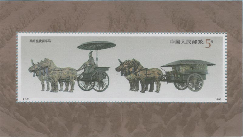 在上海世博园区中最受欢迎的场馆是中国国家馆(图25、26、27),她凝聚中国元素,象征中国精神的造型---东方之冠。它展示的主题是“城市发展中的中华智慧”。 在中国国家馆相继展出的中国国宝有:北宋画卷《清明上河图》(图28)和《秦始皇陵兵马俑》(图29)等等。尤其是数字版的《清明上河图》,让观众惊叹不已。 10月1日是中国馆日,中国邮政发行了一枚邮资明信片及相关的纪念邮戳(图30)。