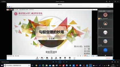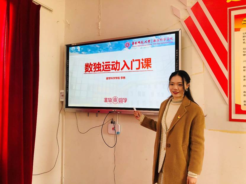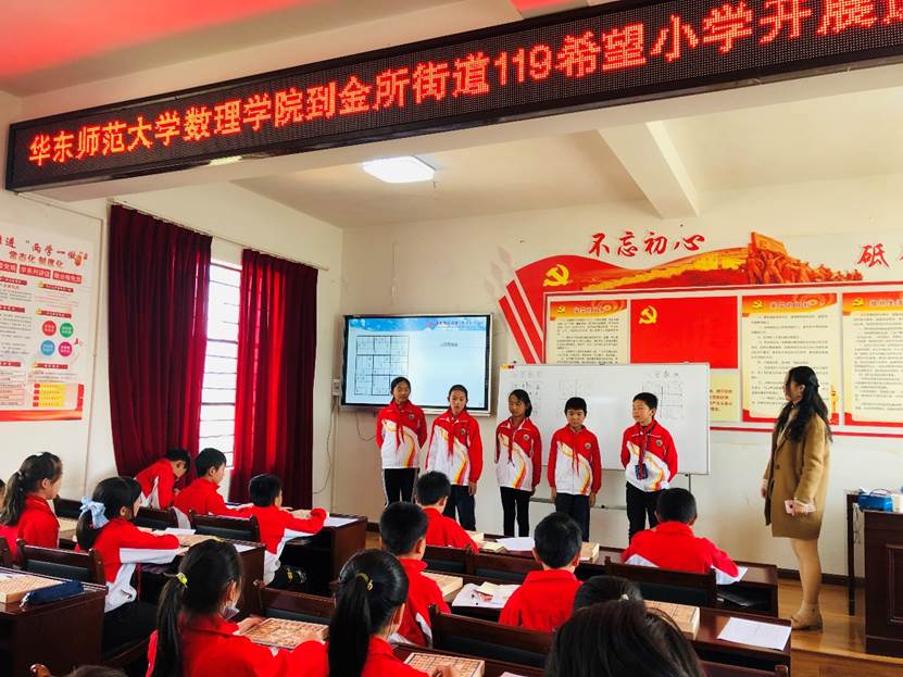 通过每周一次的云端授课,每学期一到两次的线下课程和实践课程,体验数学文化的魅力,激发数学学习的兴趣,2020年7月以来,华东师范大学数学科学学院组建了40余人的非常数学志愿者服务队,对接云南省寻甸县金所街道119希望小学,开展华东师范大学寻甸县中小幼素质教育帮扶试点学校——数学素养提升项目,旨在依托专业所学,逐步探索出以提升孩子们数学素养和思维能力为核心的教育帮扶模式,形成示范,提升寻甸基础教育质量,助力寻甸教育振兴。截至目前,项目已经成功开展了“有趣的一笔画问题”、“从趣味数学谈时间管理”和“趣味数学——韩信点兵”等七个专题的线上课程教学,以及以“数独”为专题的线下课程教学。