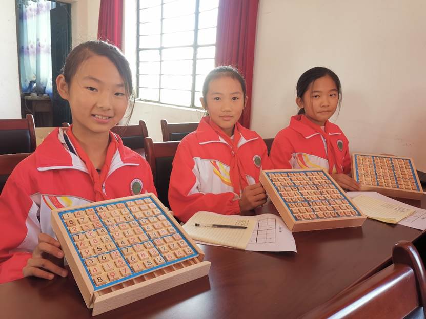 研究生志愿者李艳在孩子们期待的眼神中开启了一堂以“数独”为主题的数学课。数独是一项入门知识要求低但逻辑推理能力要求高的数学游戏,选择这一主题既是希望同学们在掌握基本原理后能快速融入课堂,又是希望他们能够亲自动手体验逻辑推理的乐趣。在尝试的过程中,很多同学出现某一格推理错误导致连环错误的情况,但在老师的鼓励和指导下,同学们迅速振作起来投入到新的尝试中,有五位同学在多次尝试后完成了这一挑战。这一堂课的体验告诉了同学们科学探索的道路中一定会面对很多困难与挑战,但要总结失败的经验、改进解决问题的方法,以坚持不懈的恒心与毅力迎难而上,才能取得成功。