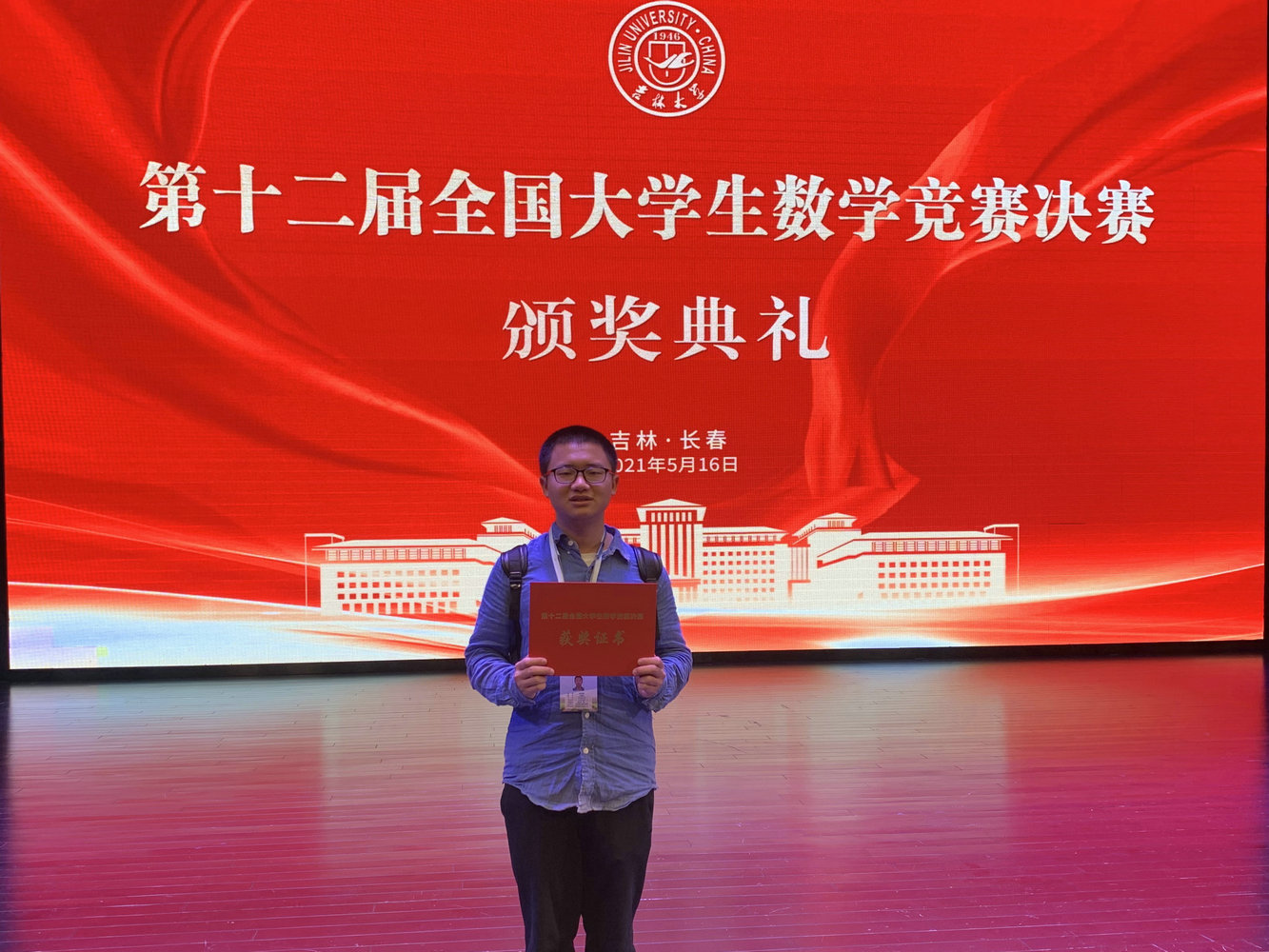 5月14日至16日,第十二届全国大学生数学竞赛决赛在吉林大学举行,本次数学竞赛共吸引来自全国32个赛区206921名学生报名参赛,668名学生进入决赛。经过激烈角逐,我院2018级本科生欧阳博翰喜获决赛一等奖。
