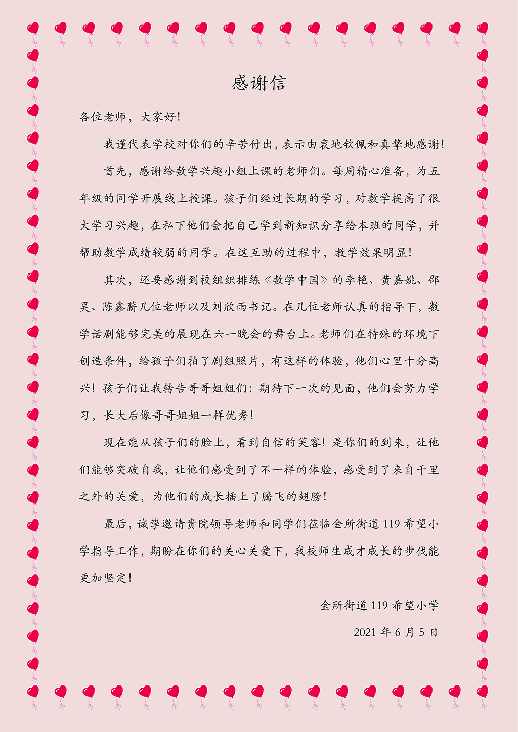 6月1日晚,原创数学话剧《数学中国》在金所119希望小学正式上演,人兽 选派到寻甸县金所街道泽铁社区的驻村第一书记李浩对此次活动非常重视并来到现场观看演出。师生们几个月的辛苦付出终于在今天绽放成绚丽的花朵,孩子们大方自信的演出收获了全校师生经久不息的掌声。我们话剧团队的导演们也为孩子们精心准备了六一儿童节礼物,孩子们收到了"数学文化校园传播大使"的聘书以及为他们度身定做的定妆照,期待他们能够让更多的同学们爱上数学。