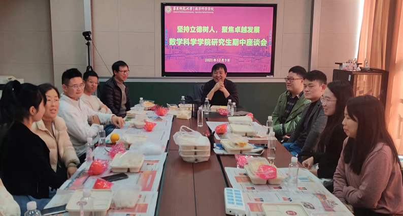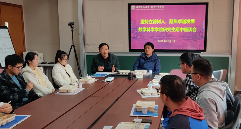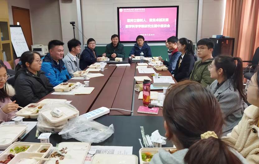 为深入贯彻落实立德树人根本任务,扎实推进学校卓越育人工作,数学科学学院于近期面向各年级研究生分别召开了三场研究生期中座谈会。学院党委书记贾挚、副院长杜荣、副书记余富团、辅导员于国妮、研究生秘书杨琪,以及各年级研究生代表出席座谈会。
