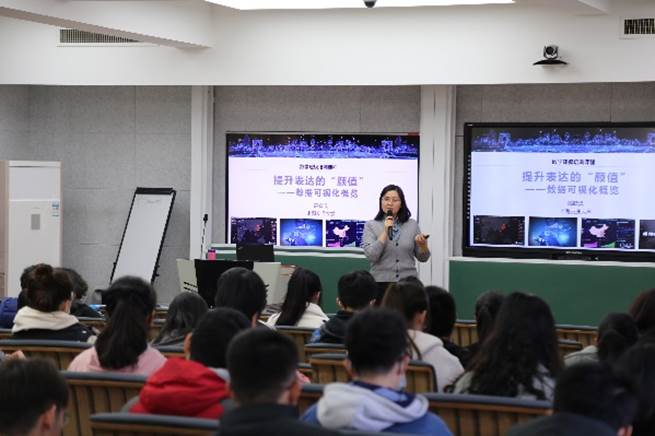 本次培训以讲座形式共分三场。第一场讲座于11月24日由高晓沨老师讲解《提升表达的“颜值”——数据可视化概览》。高老师从可视化概述、案例分析和可视化的实现进行讲解,由浅入深、层层深入。案例分析展示了30种不同图表的特点,其中既有同学们熟悉的条形图、饼图、雷达图,也有不太常用的箱式图、气泡图等。随后,高老师介绍了一些可视化软件、书籍和资源,同时从如何做好可视化给出了相关建议。