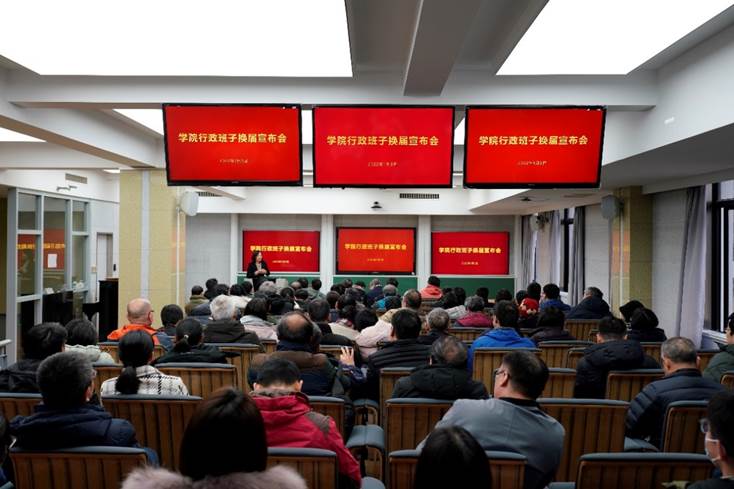 2022年1月5日上午,数学科学学院行政班子换届宣布会在数学楼102报告厅召开。校党委副书记朱民,校党委常委、组织部部长程静,学院党政领导班子、全体教职工出席会议。会议由程静主持。