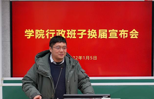 随后,吕长虹、程涛、罗栗、周国栋四位新任同志先后作表态发言。吕长虹表示,将尽快完成角色转变,全面提升能力素质,主动担当、与时俱进,紧紧围绕立德树人根本任务,围绕学校、学院“十四五”规划和学科建设、人才培养、科学研究要求,带领全院师生努力提高创新,不辱使命。程涛、罗栗、周国栋纷纷表达了对学校和学院的深厚感情,表示将尽快适应新的工作岗位,认真履职尽责,推动学院发展再上新台阶。