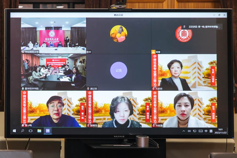 11月21日上午,认证专家组见面会通过线上线下相结合的方式举行。专家组全体成员线上参会,数学科学学院党政班子成员,数学教育系教师线下出席本次见面会。