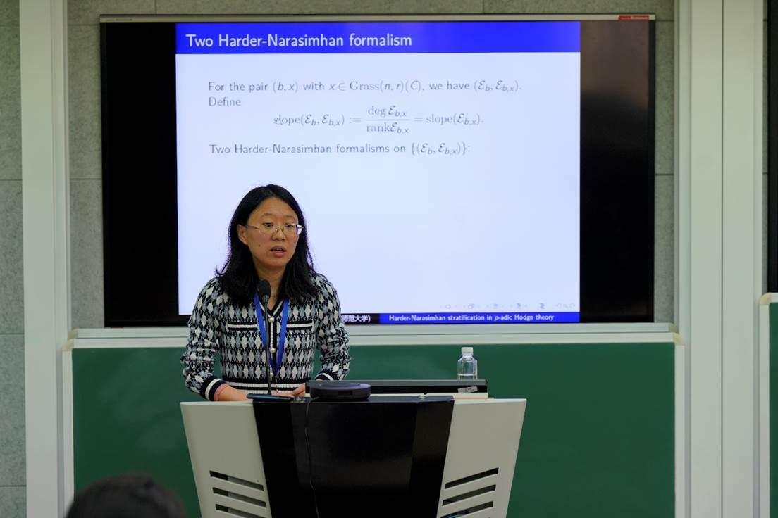陈苗芬教授作报告“Harder-Narasimhan stratification in p-adic Hodge theory”