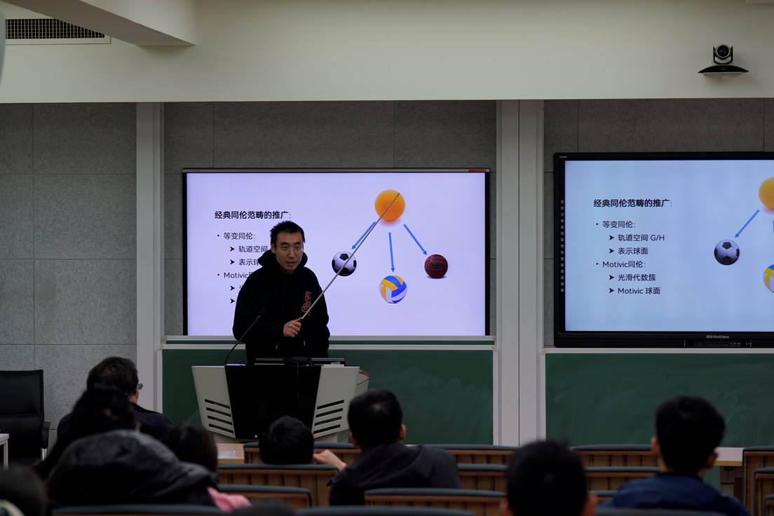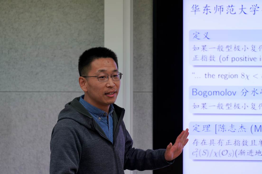 吕鑫教授作报告“Strict Arakelov inequalities for a semi-stable fibration”