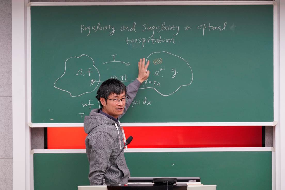 陈世炳教授作报告“Regularity and singularity in optimal transportation”