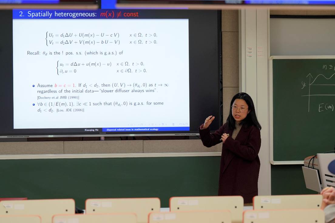 何小清教授作报告“Some recent progress on dispersal related issue in Mathematical ecology”