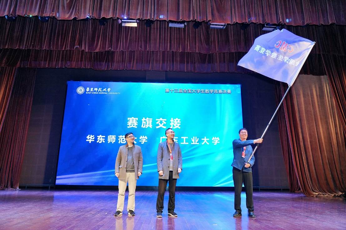 华东师范大学数学科学学院院长吕长虹教授与广东工业大学教务处处长、数学与统计学院院长王振友教授交接赛旗