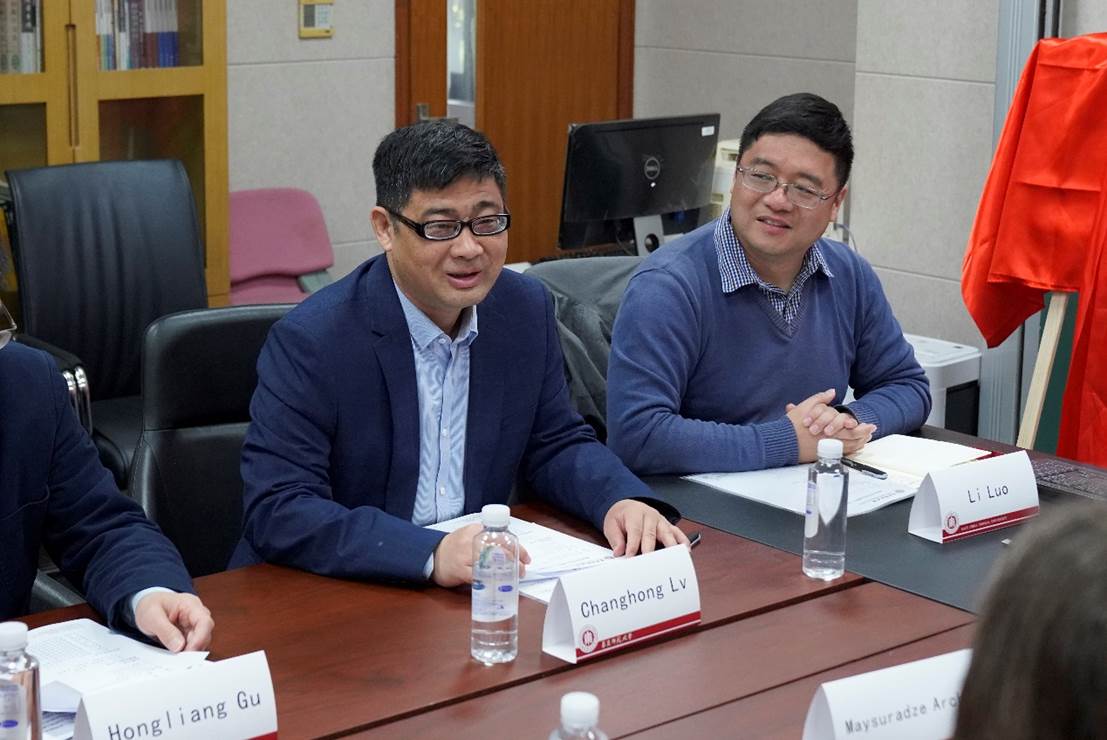 4月4日上午,华东师范大学数学科学学院中俄院士工作站揭牌仪式在闵行校区数统楼103室举行。莫斯科国立大学伊利英·亚历山大院士、布达克·鲍里斯副教授、马伊苏拉德泽·阿奇尔副教授,华东师范大学副校长顾红亮、国际合作与交流处处长杜震宇等,数学科学学院院长吕长虹及部分班子成员、教师、学生代表出席仪式。揭牌仪式由数学科学学院副院长罗栗主持。