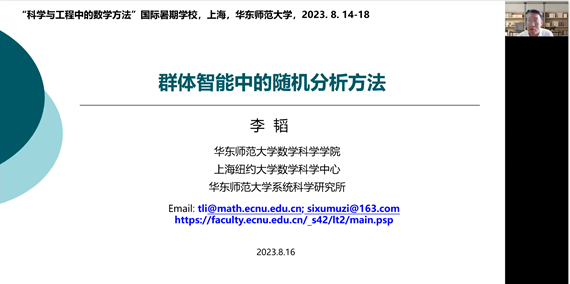 华东师范大学数学科学学院李韬教授作题为“群体智能中的随机分析方法” 报告。