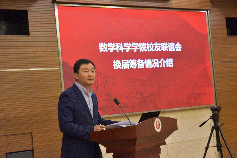数学科学学院院长吕长虹对“回家”的校友表示欢迎和感谢。他介绍了学院近些年取得的一系列成绩,强调学院所取得的成绩与广大校友的关心和扶持密不可分,希望广大校友更多的参与到校友联谊会中来,共谋未来发展,携手共创辉煌。