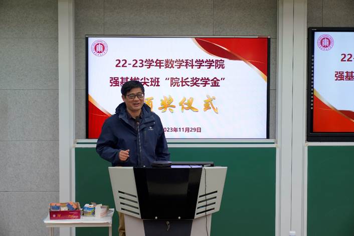 11月29日,2022-2023数学科学学院强基拔尖班“院长奖学金”颁奖仪式在数学楼102报告厅成功举办。颁奖仪式由数学科学学院副院长程涛教授主持。