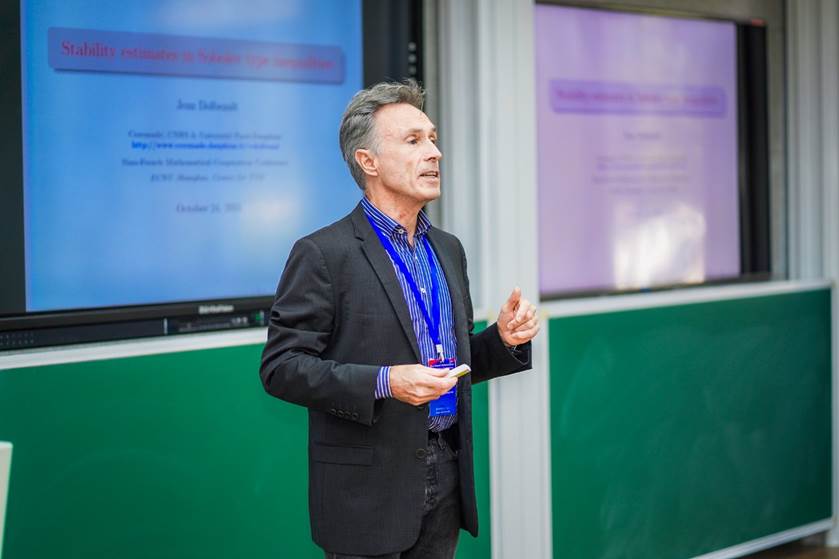 值此中法建交60周年之际,数学科学学院依托中法数学联合实验室于10月23日-27日在华东师范大学(闵行校区)数学楼举办中法数学论坛。论坛分为表示论和偏微分方程两个分会场,邀请法方9位专家、中方11位专家作学术报告,70余位师生参与本次论坛。