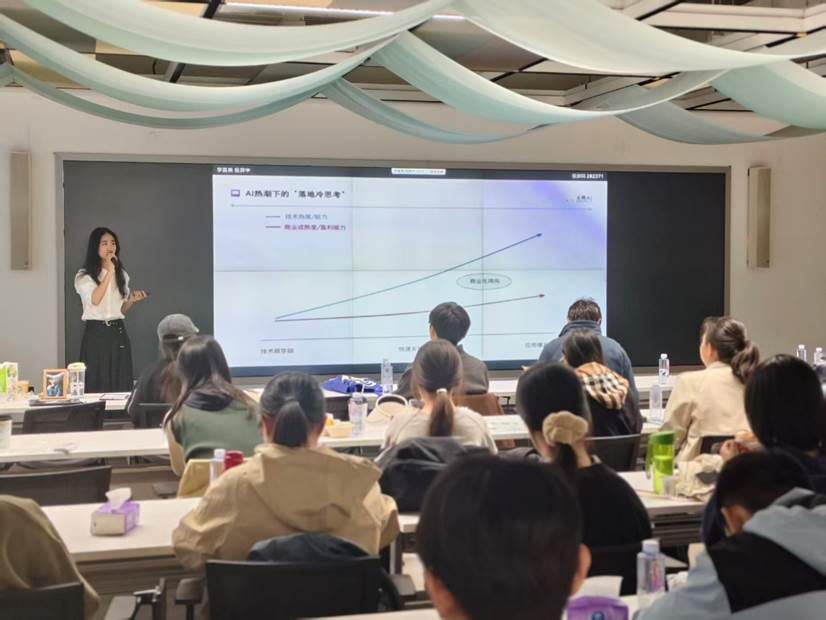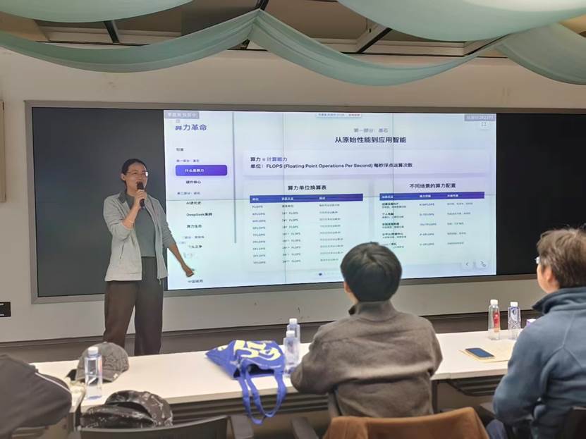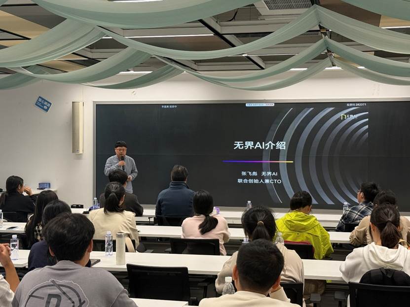 午间茶歇为同学们提供了与无界AI员工自由交流的机会,大家畅所欲言,思维碰撞不断。随后,无界魔镜产品经理谢兴宇就“AI热潮背后的冷思考”展开分享,探讨技术商业化落地的实践路径。矩池云产品经理许蕾蕾深入浅出地介绍了算力的核心价值。教育负责人刘猛则分享了AI赋能教育及AI Agent的最新动态。
