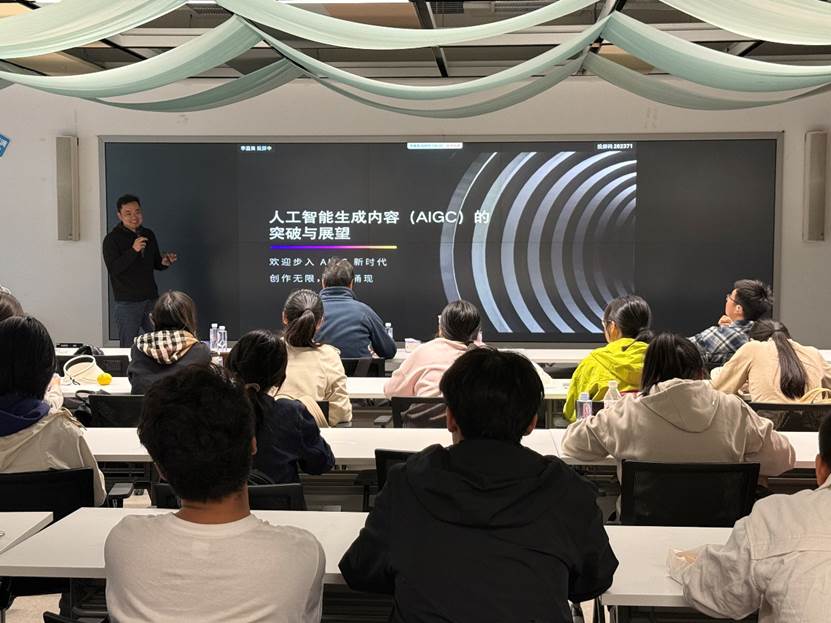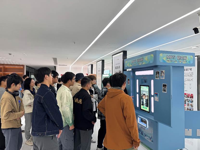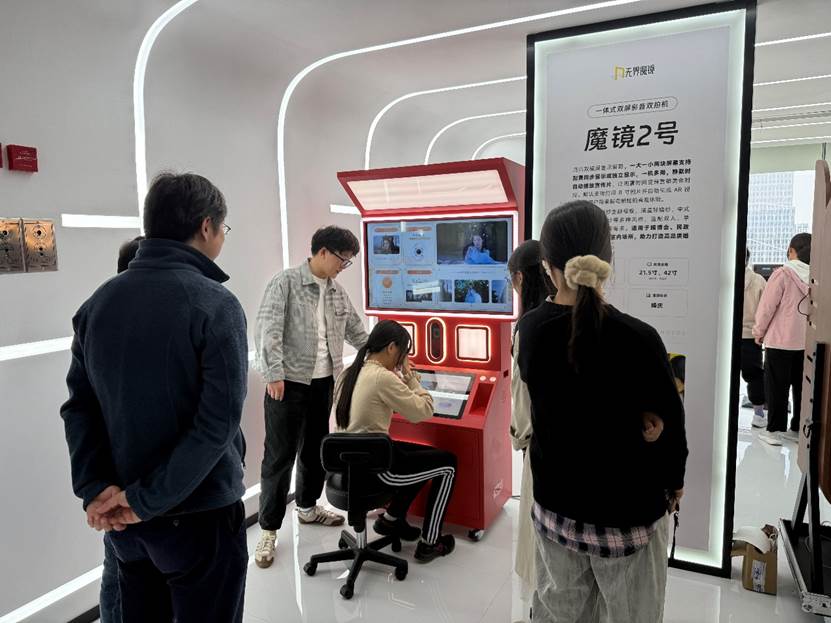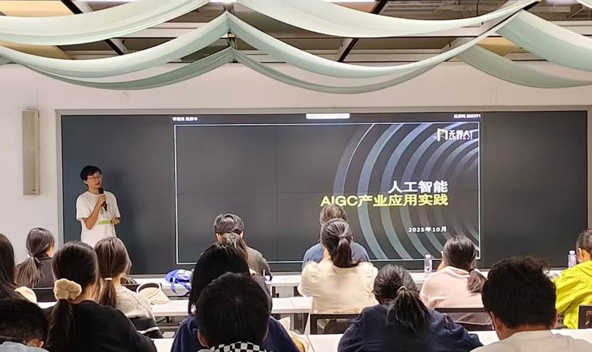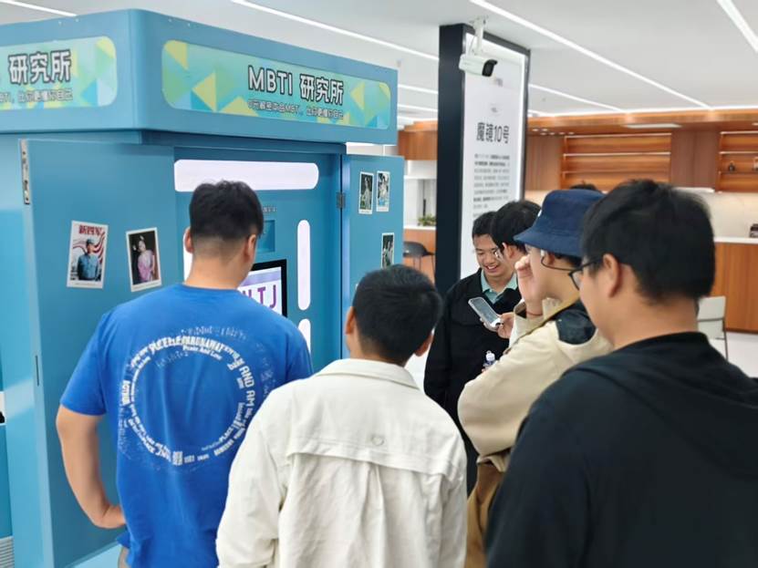在互动体验环节,同学们在无界AI项目经理雷超龙的引导下,亲身体验了多款AI产品。无界魔镜AI美拍机前气氛热烈,“素颜拍照即可生成精修级写真,还原度极高!”仅需简单操作,30秒内即可输出高质量影像,引来阵阵惊叹。此外,通过照片与问答快速判断MBTI人格类型的互动应用,也激发了同学们的浓厚兴趣。直观的产品体验让大家对AIGC有了更真切的感受,也对人工智能技术产生了更多好奇。
