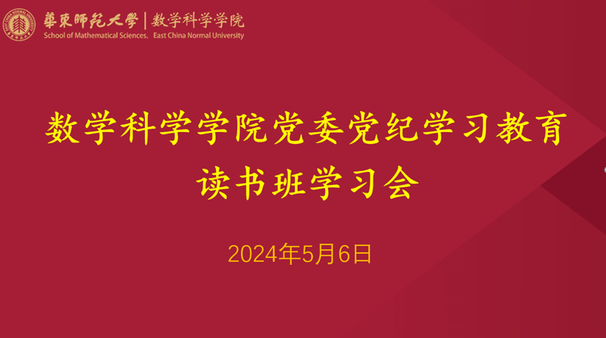 数学科学学院党委举办党纪学习教育读书班学习活动按照校党委党纪学习教育统一部署,4月29日上午,数学科学学院党委在数学楼126室举办党纪学习教育读书班。学院党委班子成员参加读书班学习活动。贾挚表示,举办党纪学习教育读书班是一项重要政治任务,学院党委班子成...2024-04-29