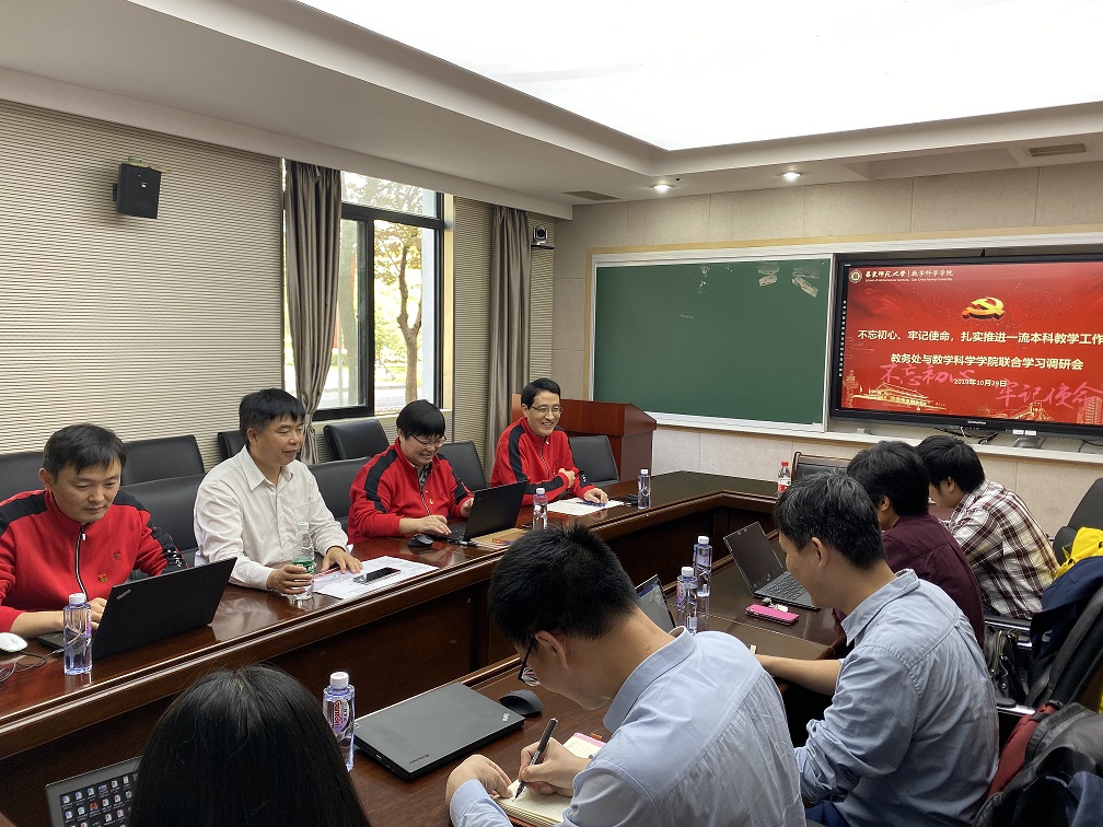不忘初心牢记使命,扎实推进一流本科教学工作改革 教务处与数学科学学院联合开展主题教育学习调研活动10月28日上午,教务处处长孟钟捷、副处长谭红岩等携教务处党支部一行来到数学楼,与数学科学学院党政领导班子一起联合开展“不忘初心、牢记使命”主题教育学习调研活动,数学科学学院党委书记贾挚、院长谈胜利、副院...2019-10-28
