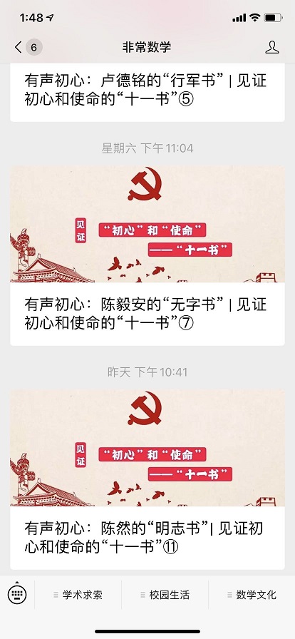 阅有声、悟初心、担使命,数学科学学院打造有声微党课深入主题教育不忘初心、牢记使命,是党保持永远年轻的重要法宝,是党始终铭记历史的重要力量,是党不断开创未来的重要基础。在“不忘初心,牢记使命”主题教育活动中,数学科学学院党委从10月14日起组织并指导学生党员开展11期“...2019-10-25