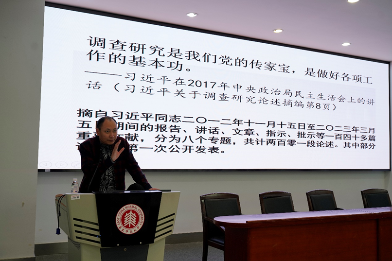 房中从调查研究是关系党的事业成败的大问题、陈云调查研究的主要历程、陈云调查研究的方法与启示三个方面,系统阐述了调查研究的重要性,深入浅出地讲解了陈云同志调查研究的方法与运用。他指出,陈云同志“不唯上、不唯书、只唯实,交换、比较、反复”的十五字诀,是他一生工作方法与工作经验的高度概括总结,也是我们学习调查研究的重要参照。他结合大量党史故事强调,提升调查研究能力要坚持实践第一的观点,实事求是,讲真话,写实情;要坚持群众路线,掌握科学的调查研究方法;要善于发现问题,分析问题,准确把握事物发展的历史现状和产生的影响;要积极探索事物发展的规律,预测事物发展的趋势,提出解决问题的建议;要善于总结经验,发现典型,指导推动工作。