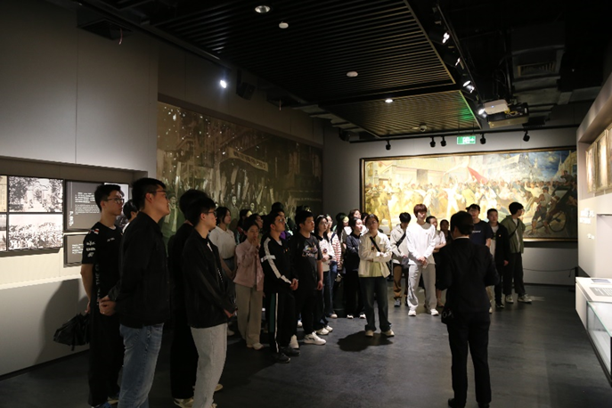 在纪念馆内,支部为新发展的预备党员举行了入党宣誓仪式,支部其他成员也跟随重温入党誓词,本科生党支部书记尹强老师领誓。在鲜红的党旗面前,师生党员庄严宣誓。铿锵有力的誓词回响中,师生党员们牢记使命担当,汲取奋进力量,更加坚定了继承烈士遗志,赓续红色血脉,为共产主义奋斗终身的理想信念。