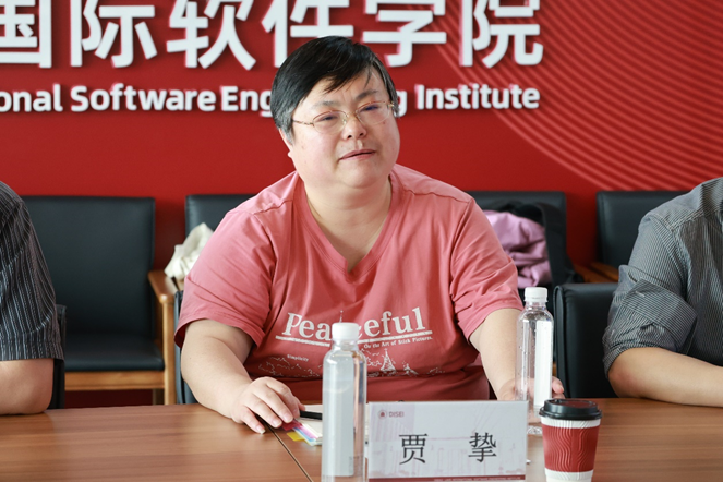 软件工程学院党委书记杨艳琴对数学科学学院的到来表示热烈欢迎,她向各位老师介绍了滴水湖国际软件学院的建设规划,重点介绍了滴水湖国际软件学院利用临港新片区的制度优势、产业资源,深度探索产教融合,创新卓越软件人才培养模式等。她表示,此次联组学习,要将“实”的作风贯彻其中,在学习八项规定精神的同时,探索两学科资源共享、交叉融合、创新发展的新路径。
