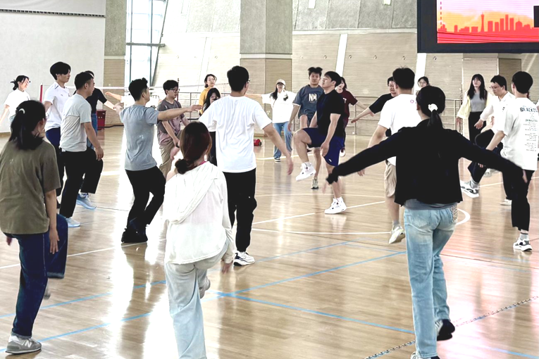 2025年5月21日,数学科学学院应用数学博士生第一党支部与第二党支部、联合体教民传学硕党支部、联合河口海岸科学研究院2023级博士研究生党支部、政治与国际关系学院2024级新闻传播专硕党支部共同举办“运动‘汇’青春,以‘武’会朋友”主题党日活动,50余名党员和入党积极分子参与活动,共同学习领悟和实践多学科文化内涵。