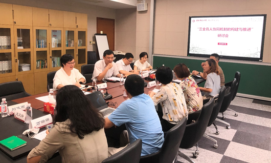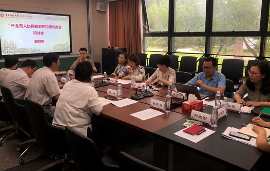 7月10日下午,人兽 在统计楼103室召开“三全育人协同机制的构建与推进”工作研讨会。党委宣传部副部长董盈盈,孟宪承书院党委书记兼院长吴薇、党委常务副书记夏建国、副书记万珊珊、副院长苏振兴,光华书院党委书记赵旌旌、副书记涂皘、副院长谢雨杉,人兽 党委书记贾挚、副书记余富团、专职组织员龙文静、团委书记刘欣雨参加了研讨会。会议由余富团主持。