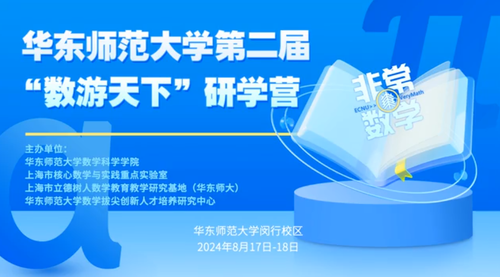 2024年闵行区“探秘数学”研学营顺利结营2024年8月19日至23日,由闵行区教育局主办,华东师范大学数学科学学院、上海市核心数学与实践重点实验室、华东师范大学数学拔尖创新人才培养研究中心承办,华东师范大学第二附属中学闵行紫竹分校协办的2024年闵行区“...2024-08-27