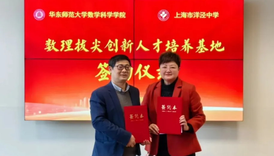 数学拔尖创新人才培养研究中心与上海市洋泾中学签约合作共建协议2025年3月6日,华东师范大学数学拔尖创新人才培养研究中心与上海市洋泾中学合作共建数理拔尖创新人才培养基地签约仪式在洋泾中学举行。本科生院院长、数学科学学院院长吕长虹,数学科学学院党委书记贾挚,数学教育系...2025-03-07